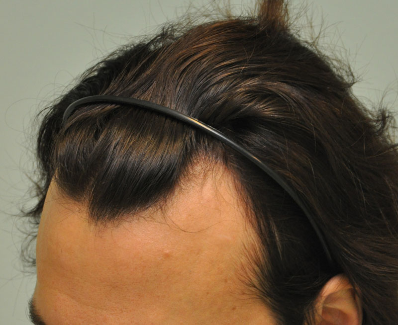 Ennél a páciensnél NoShave FUE hajbeültetés technikát alkalmaztunk. Nem volt hajnyírás sem az adó, sem a befogadó területen, így pótoltuk a hajhiányát.